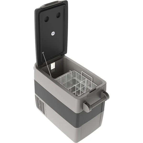 Novo design com textura robusta, em cores mais escuras, compacta no exterior e espaçosa no interior. Modelos com porta copos. Fabricada com componentes plásticos injetados de alta qualidade e durabilidade, facilitando a limpeza do produto. Geladeira inclui cesto e alça.